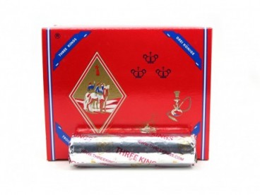 Pacote vermelho do produto Three Kings com imagem de três reis e embalagem prateada