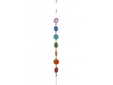 Colar com contas ovais coloridas em tons do arco-íris com acabamento prateado