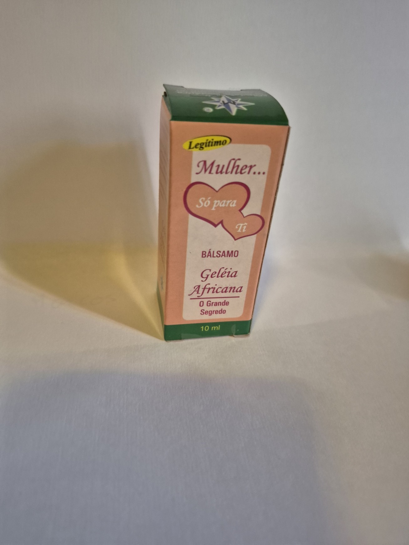 Caixa de bálsamo Geleía Africana com texto em verde e rosa
