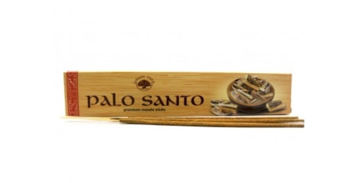 Caixa de incenso Palo Santo com varetas e lascas de madeira
