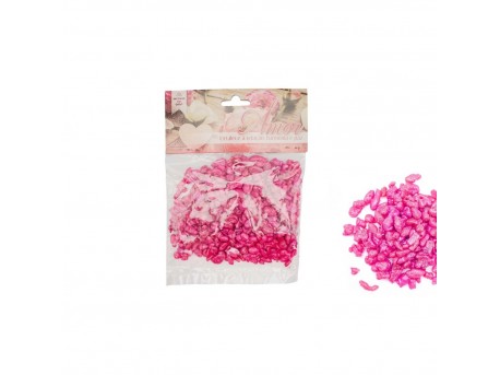 Pequenos corações rosa em saco plástico transparente com etiqueta floral