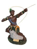 Estátua decorativa arqueiro africano ajoelhado em resina