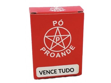 Caixa vermelha de pó PROANDE com texto 'VENCE TUDO'