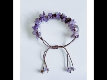 Pulseira de pedras semi-preciosas violetas em fio castanho ajustável