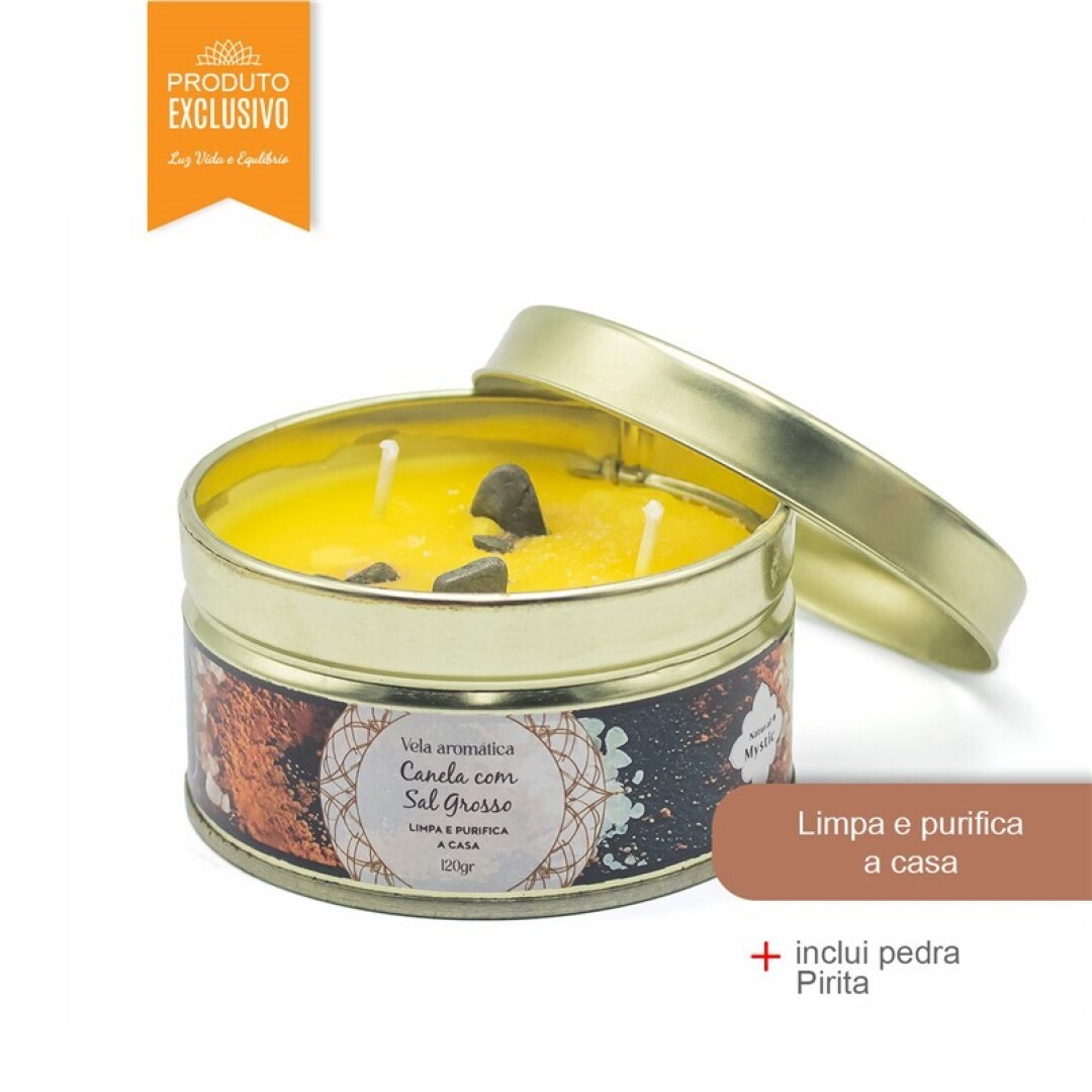 • Vela c/ Pedras Natural Mystic Canela c/ Sal Grosso 120gr